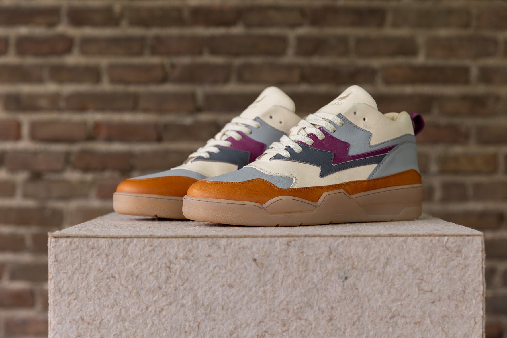 This is our first original sneaker designed and developed with sustainable solutions. Available in a limited run of 100 pairs. Second natural colorway is rocking earthy tones of brown, off-white, purple and grey.